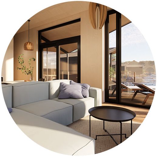 De woningen worden ruimtelijk en comfortabel ingericht. De kleuren van het interieur zijn gekozen op basis van natuurtinten. De recreatiewoningen worden compleet ingericht opgeleverd.
